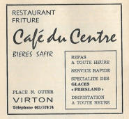 -Plus tard, il y aura le Chalet, rue Dr Gentil et puis le Rustique sur la Grand’Place où c’était le café le plus en vue. Ces deux cafés « vedettes » de Virton étaient en forte concurrence. Leurs gérants cherchaient des « plus » qui pourraient leur attirer une plus grande clientèle : local du R.E.S.C. Virton, salle indépendante pour réunion, nouveaux jeux, service de taxi,… en plus d’avoir déjà une terrasse. Il ne faut pas oublier que la clientèle « mouvante » pouvait se rendre facilement d’un établissement à l’autre par le raccourci de la rue de la Prison !