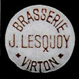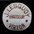 Le double jambage du « Q » devient un symbole qui est juste au milieu du nom LESQUOY et Virton a été mis entre guillemets :