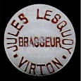 Bouchons en porcelaine* avec le nom : 7 marquages différents (plus que de bouteilles différentes) tous en rouge et tous marqués Jules Lesquoy au début et J. Lesquoy par la suite. Une seule a le double jambage du « Q ».